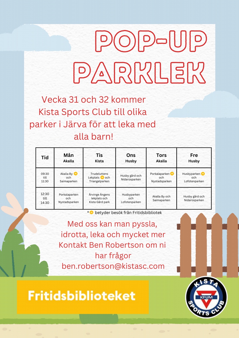 Vi ska besöka olika parker i Kista, Akalla och Husby för att aktivera barn och göra de sista dagarna av sommarlovet lite mer lyxigt!