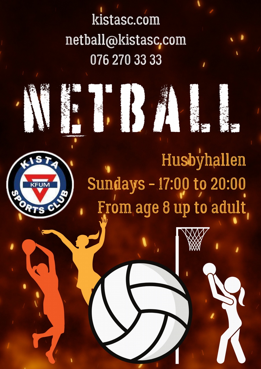 Alla från 8 år är välkomna att spela på netball på Husbyhallen - man spela netball från kl. 17 till kl. 20