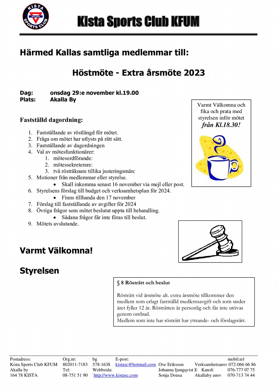 Kallelse till Höstmöte