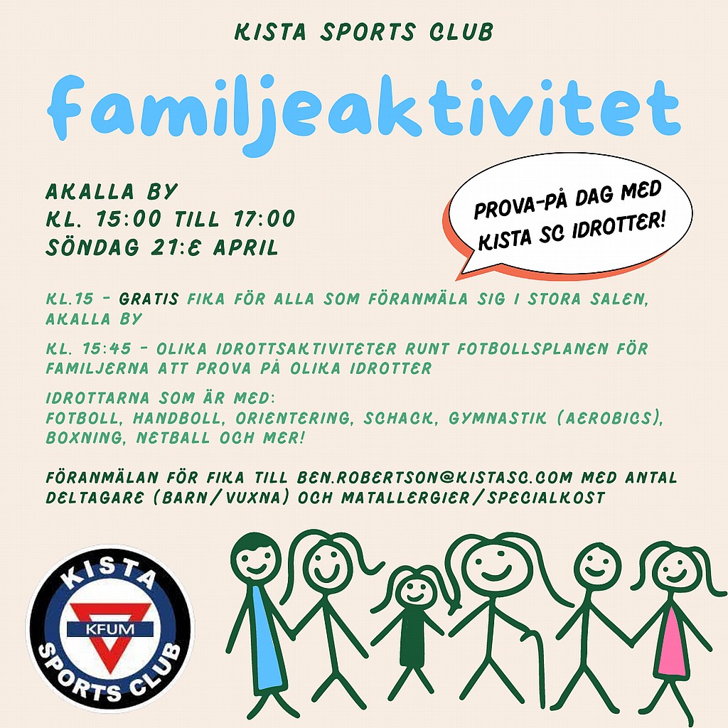 Den 21:e april anordnar Kista Sports Club en gratis aktivitet för alla familjer i Järva.