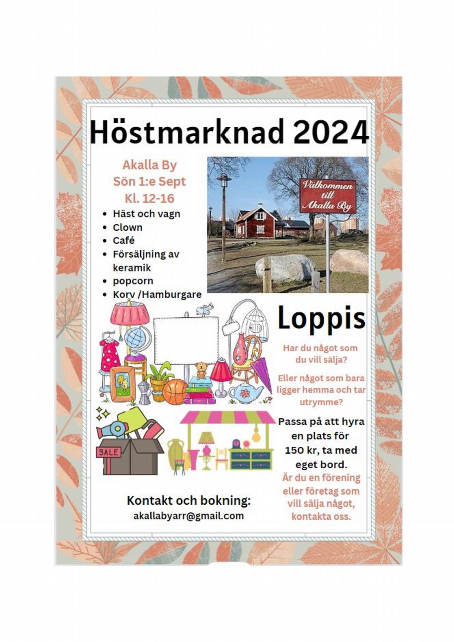 Vill du sälja något på höstmarknaden? Kontakta akallabyarr@gmail.com