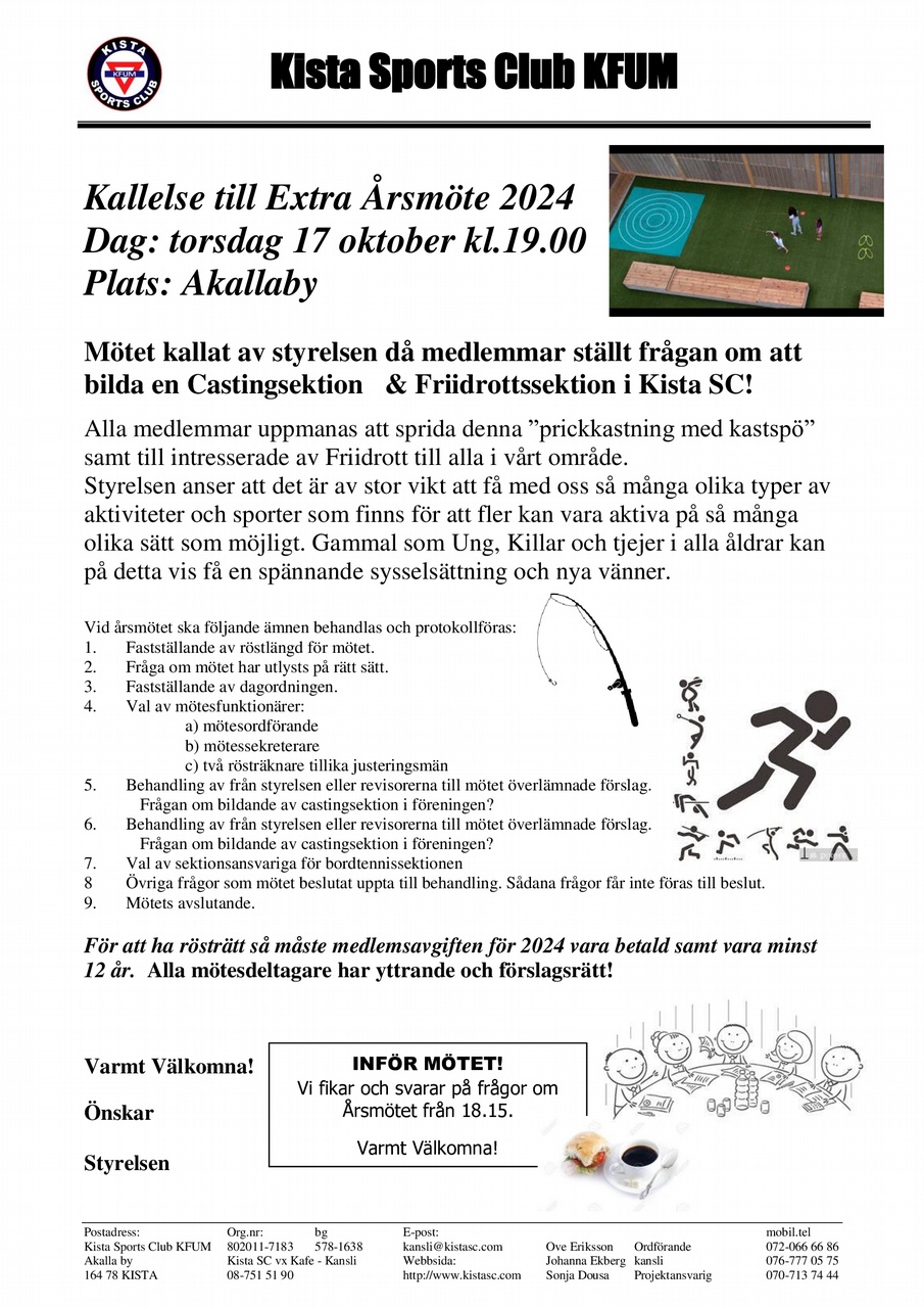 Styrelsen har fått förfrågan om att starta upp Casting och Friidrott i Kista SC.